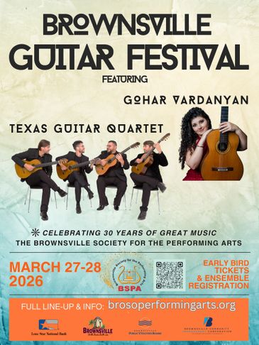 In 2002, the Classical Guitar Studies program of what was then the University of Texas Brownsville Music Department, now the University of Texas Rio Grande Valley School of Music (UTRGV), partnered with the BSPA and other benefactors to found the Brownsville Guitar Ensemble Festival and Competition. About to celebrate its 20th anniversary , it is an academically challenging program respected by classical guitar professionals, teachers, students and aficionados throughout the world. It is the largest event of its kind in the USA. Behind it all is the renowned classical guitar master, Prof. Michael Quantz, head of Classical Guitar Studies at the Brownsville campus and past winner of the University of Texas Regent's Outstanding Teaching Award and the UTB President's Outstanding Teaching Award. He is considered an international leader in classical guitar ensemble education. Dr. Quantz also serves as President of the BSPA festival activities take place at the TSC Arts Center, a state of the arts music hall that accommodates from 30 to 50 guitar ensembles that travel to Brownsville from throughout the USA and Mexico. K-12 to university level participants compete and are judged by experts, celebrities and true masters in their field of study. Past Festivals have featured star performers such as David Russell, Adam del Monte, Paul Galbraith, the Texas Guitar Quartet, Duo Melis, the Tantalus Quartet, Leo Kottke, Martha Masters, Ana Vidović, Shingo Fujii, Los Romeros and the Los Angeles Guitar Quartet (LAGQ). This is a superb experience for the public, music lovers of all styles, professionals, and students. They get to meet their idols, attend their performances and participate in their master classes and clinics. For young classical guitar students, being judged favorably by such luminaries is a major lifetime achievement and more than enough reason to practice, practice, practice! Smash the button near the top of this page for further information on the festival. Or, just click here.
